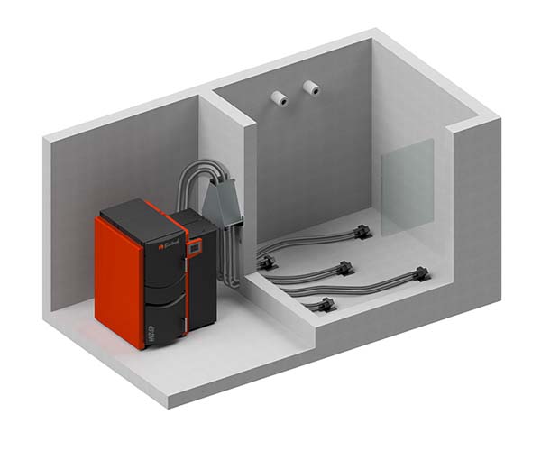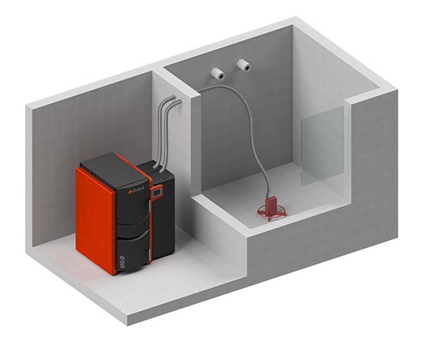 Il n’y a pas de place pour les pellets au sous-sol – le réservoir enterré est la solution.
